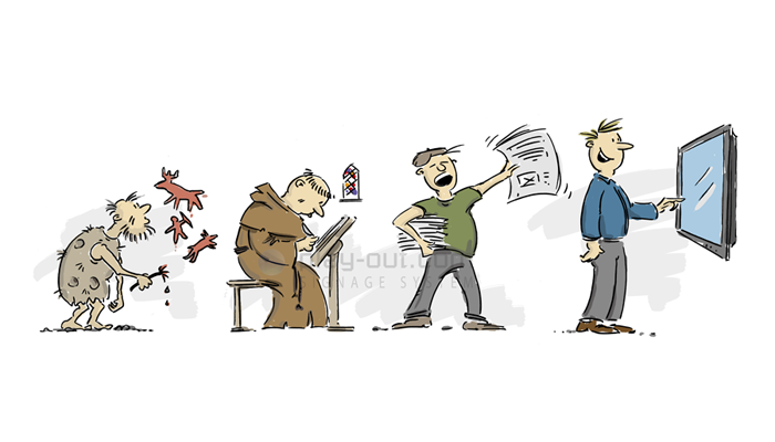 Digital information systems, so-called digital signage systems, are considered by many to be something new and revolutionary. Let us de-dramatise